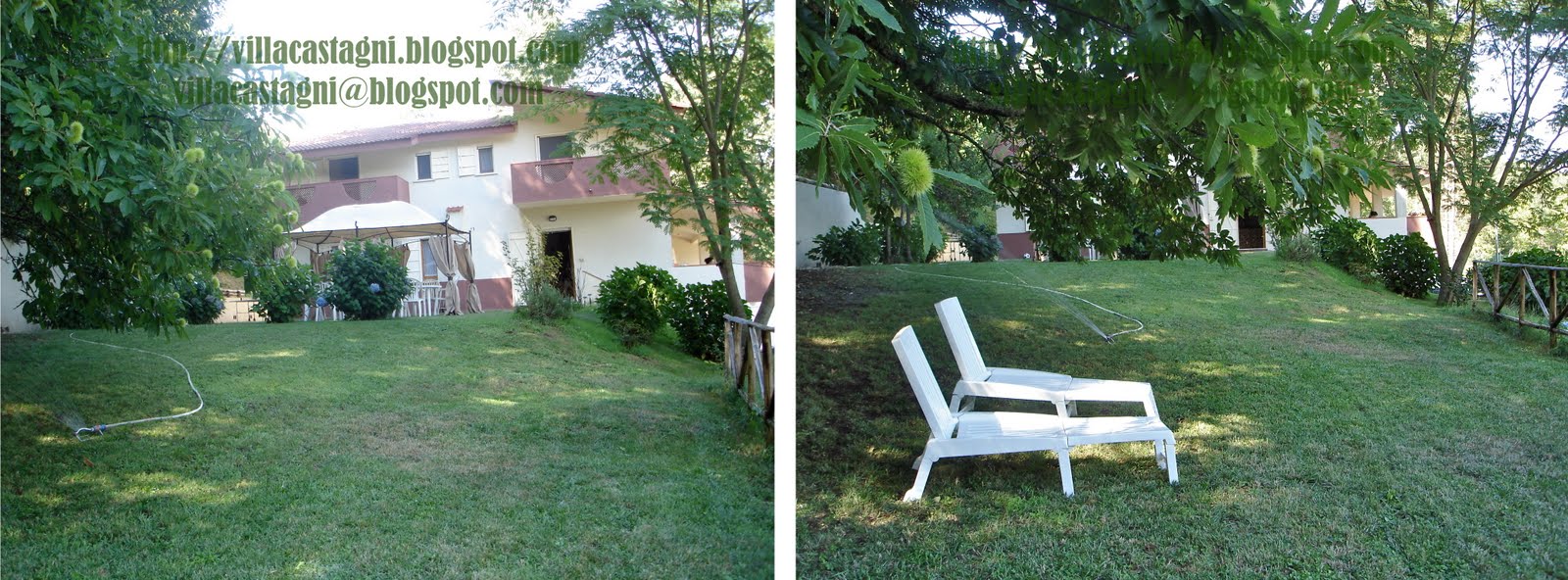 Il sole tra gli alberi centenari di castagni e querce, il prato verdissimo interrotto solo dalle ortensie azzurre e rosa, i sentieri che consentono piccole passeggiate già all'interno del grande giardino, il bosco che inizia a dieci metri dalla casa: ecco l'atmosfera che troverete nel B&B Villa dei Castagni.